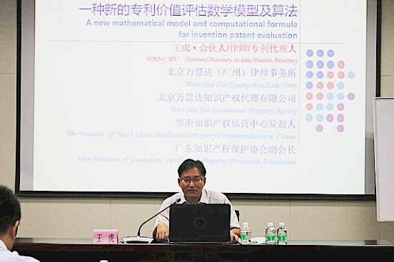 8月16日上午,由万慧达合伙人王虎老师为学员授课,授课主题是:一种新的专利权价值评估模式探索与实践。王虎老师以专利的可货币化为基础,介绍了专利作为一种资产的价值评估尺度即要遵循现值与相对值的评估规律,传统的三种专利价值评估方法即成本法、收益法、市场法,以及中技所的评估模型,并重点阐述了一种新的专利价值评估方法与模型即产业法。