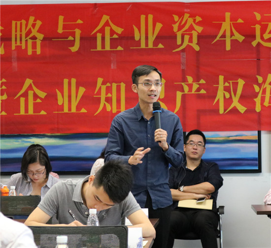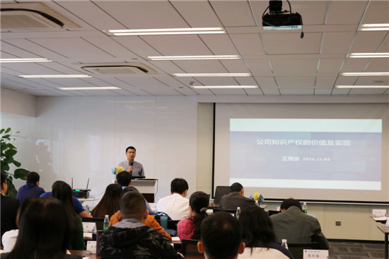 王海波老师给学员讲课《企业知识产权的价值与实现》。