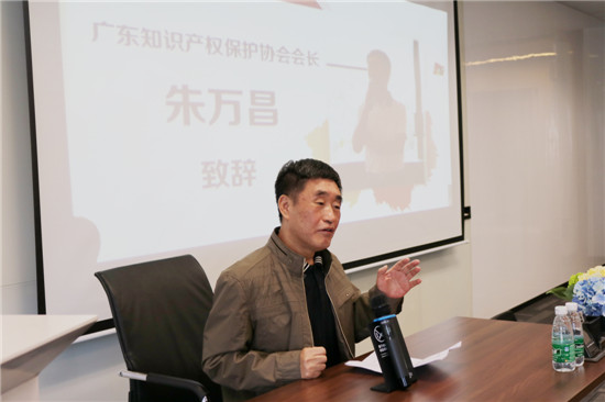 广东知识产权保护协会会长朱万昌为开班仪式致辞。