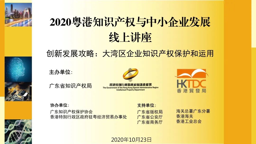 2020粤港知识产权与中小企业发展线上讲座顺利开播