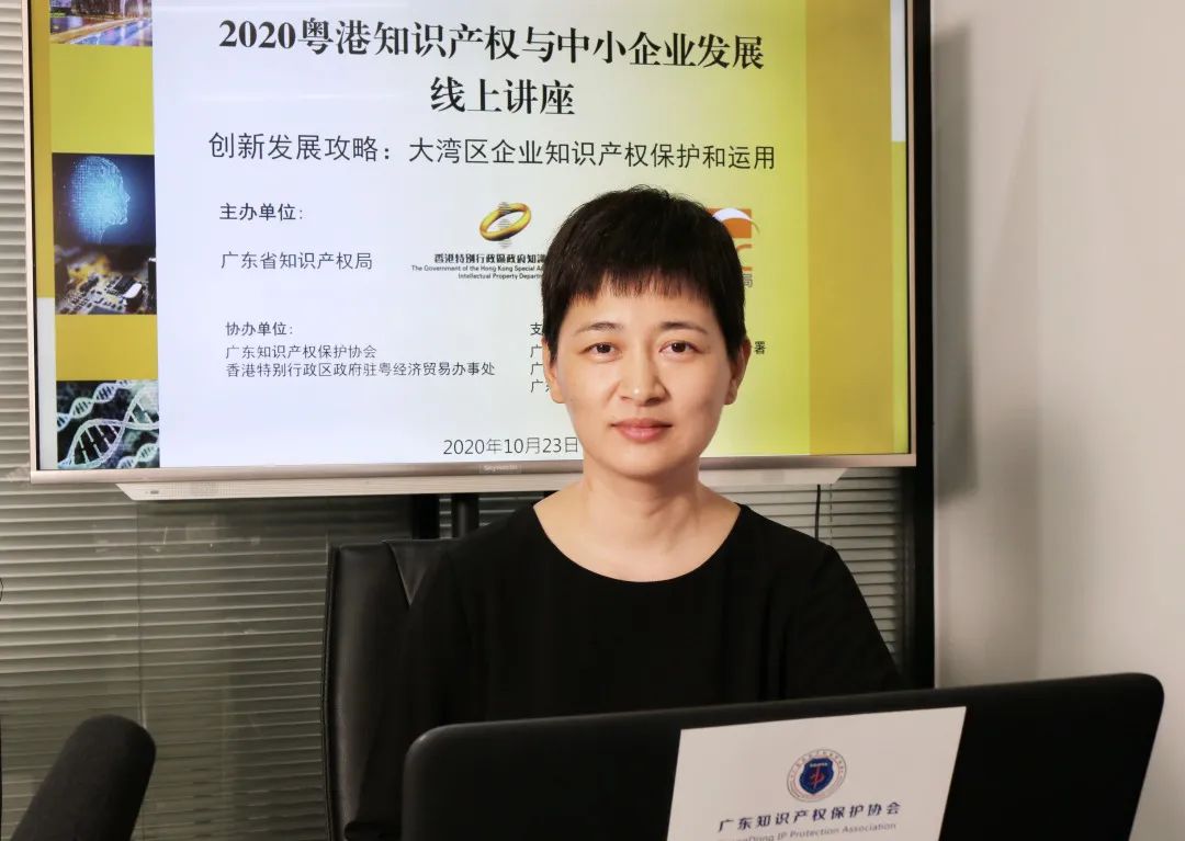 为贯彻落实《粤港知识产权合作计划(2020年)》精神及促进粤港知识产权和中小企业发展,2020年10月23日下午三点,2020粤港知识产权与中小企业发展线上讲座正式开播,讲座通过线上形式连接广州和香港两边直播间,直播间由广东省市场监督管理局(知识产权局)知识产权促进处王留军处长担任主持人,邀请了广州知识产权法院三级高级法官丁丽女士、中伦律师事务所知识产权部权益合伙人王永红律师、香港特区政府知识产权署助理署长潘敏娴女士、香港理工大学企业发展院暂任院长王家达先生四位主讲嘉宾,就“创新发展攻略:大湾区企业知识产权保护和运用”主题进行交流分享。