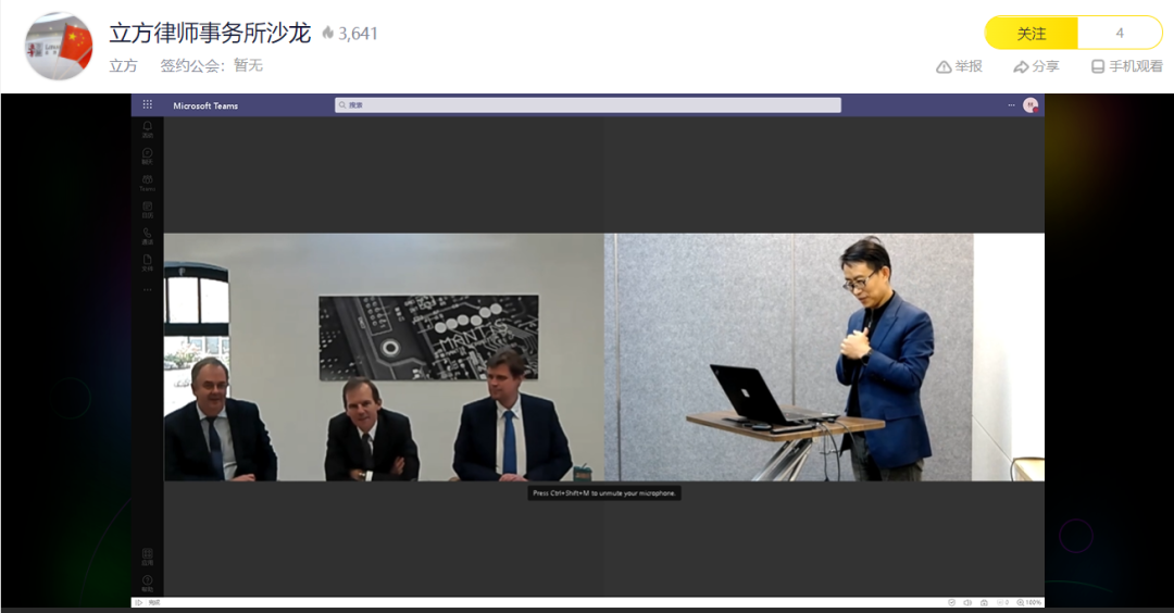 本期研讨会为中国企业走出去系列知识产权和投资法律风险防范系列研讨会第一期,以英文作为会议语言。邀请北京市立方(广州)律师事务所主任刘延喜,英国布莱克&怀特律师事务所合伙人John Allen、知识产权负责人Tom Carver、律师James Breffit,广东恒益律师事务所高级合伙人陈艳,北京市立方(广州)律师事务所律师程芊芊作为分享嘉宾,深入探讨当前局势下海外知识产权和投资可能面临的风险和问题。