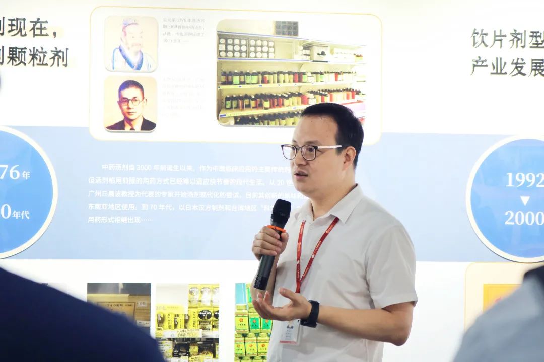 一方制药技术副总监罗文汇带领参会代表参观公司展厅。