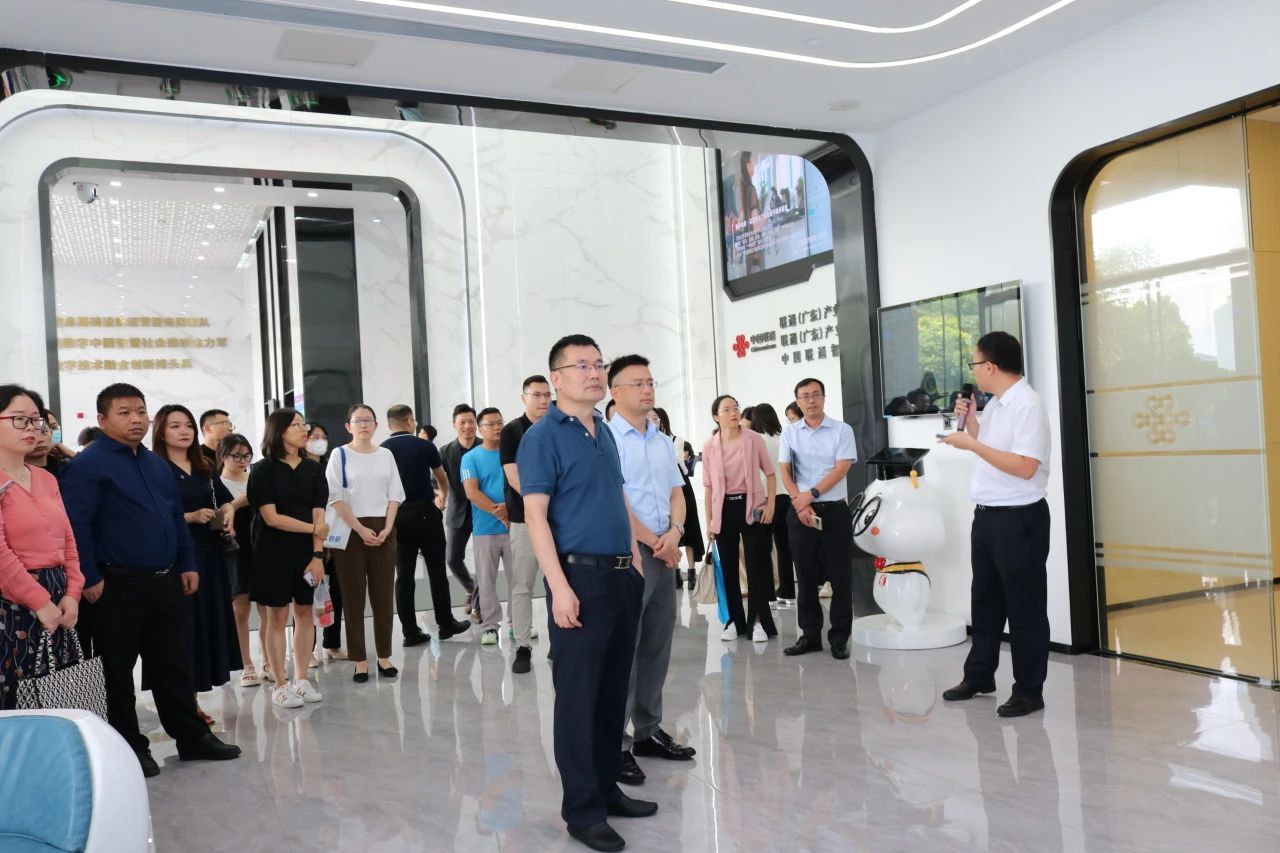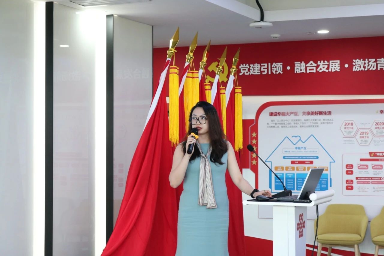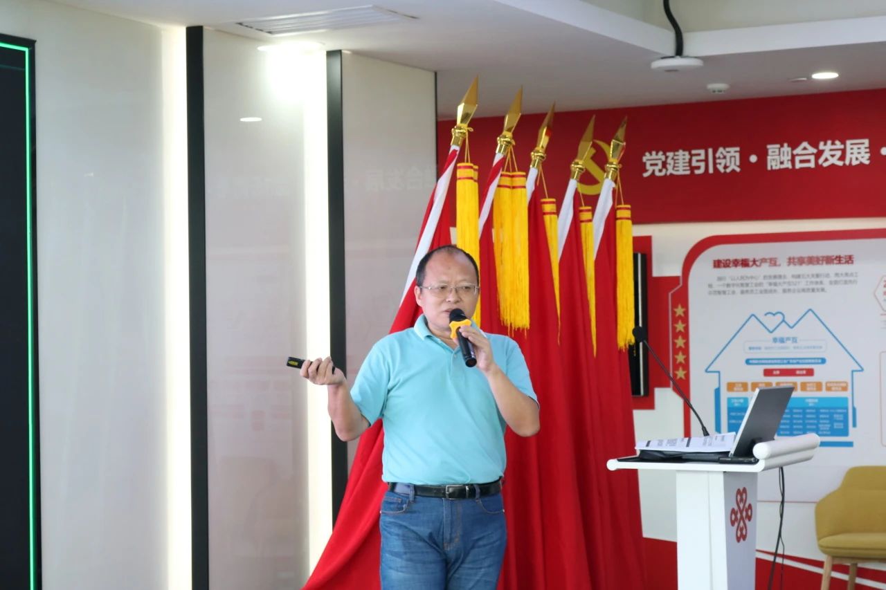 在联通(广东)产业互联网有限公司科技创新部负责人张骁带领下,参会代表参观联通产互公司的展厅,了解公司概况及业务范围。