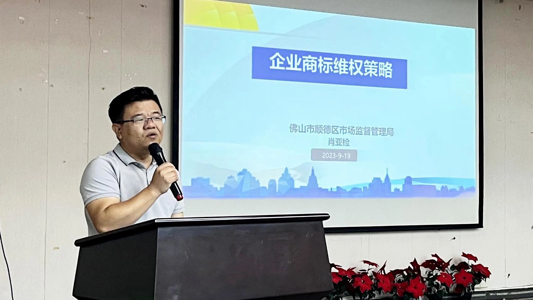 顺德区市场监督管理局综合执法一大队副大队长肖亚检详细分享《企业商标维权策略》课程。他结合多年执法实务工作经验,为企业带来商标维权建议。