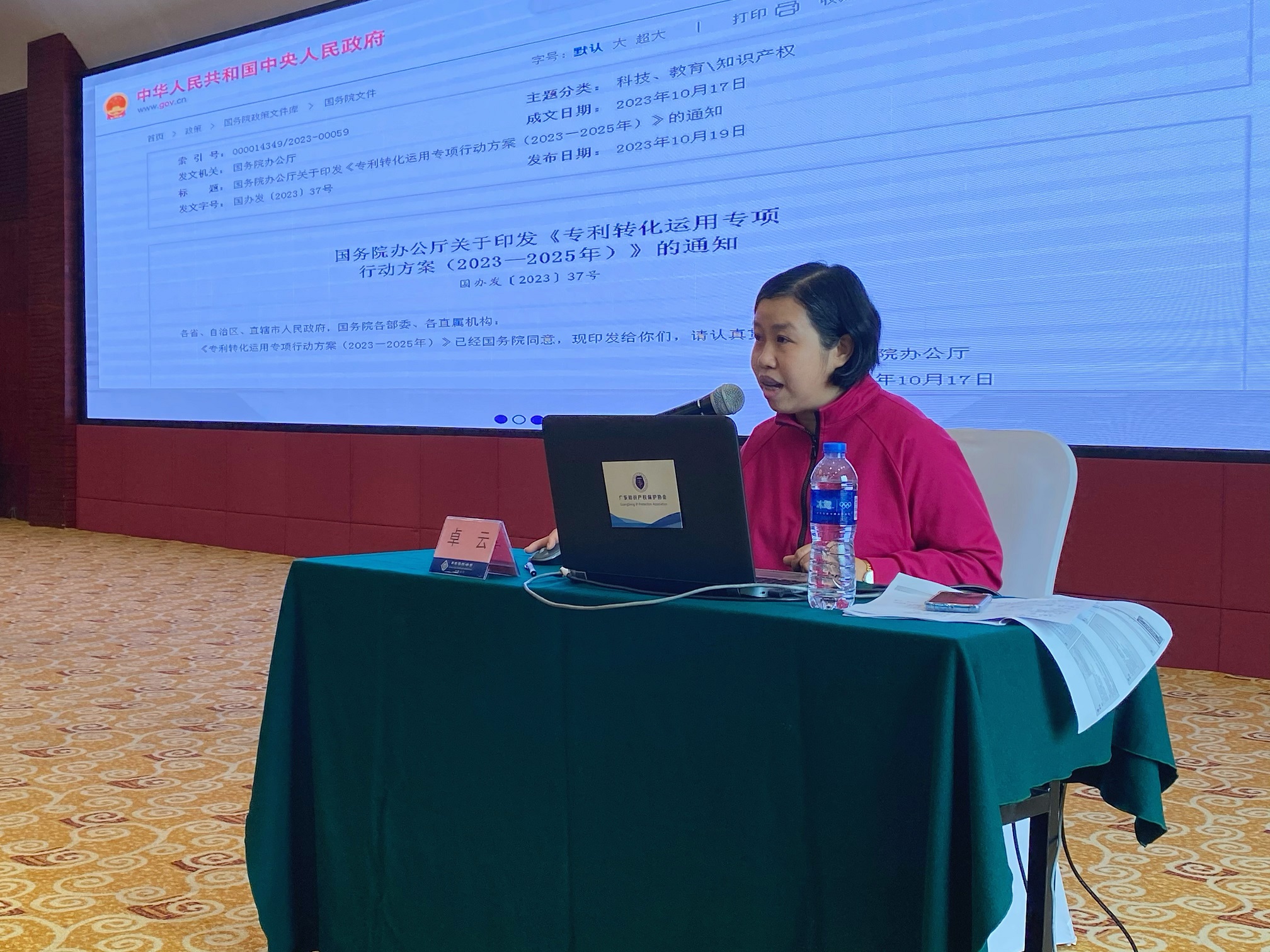 卓云副秘书长以“专利转化运用专项行动方案(2023—2025年)解读”为题授课。她重点围绕《方案》主体内容及主要内容、知识点解读、基本判断、发展态势、基本方略五个方面展开详细分享。同时,她指出,知识经济的基本特征是创新发展,创新发展的核心制度是知识产权,各主体应立足于自身的经济发展实际与战略目标,深挖核心专利的价值内涵,助力未来发展扬帆远航。