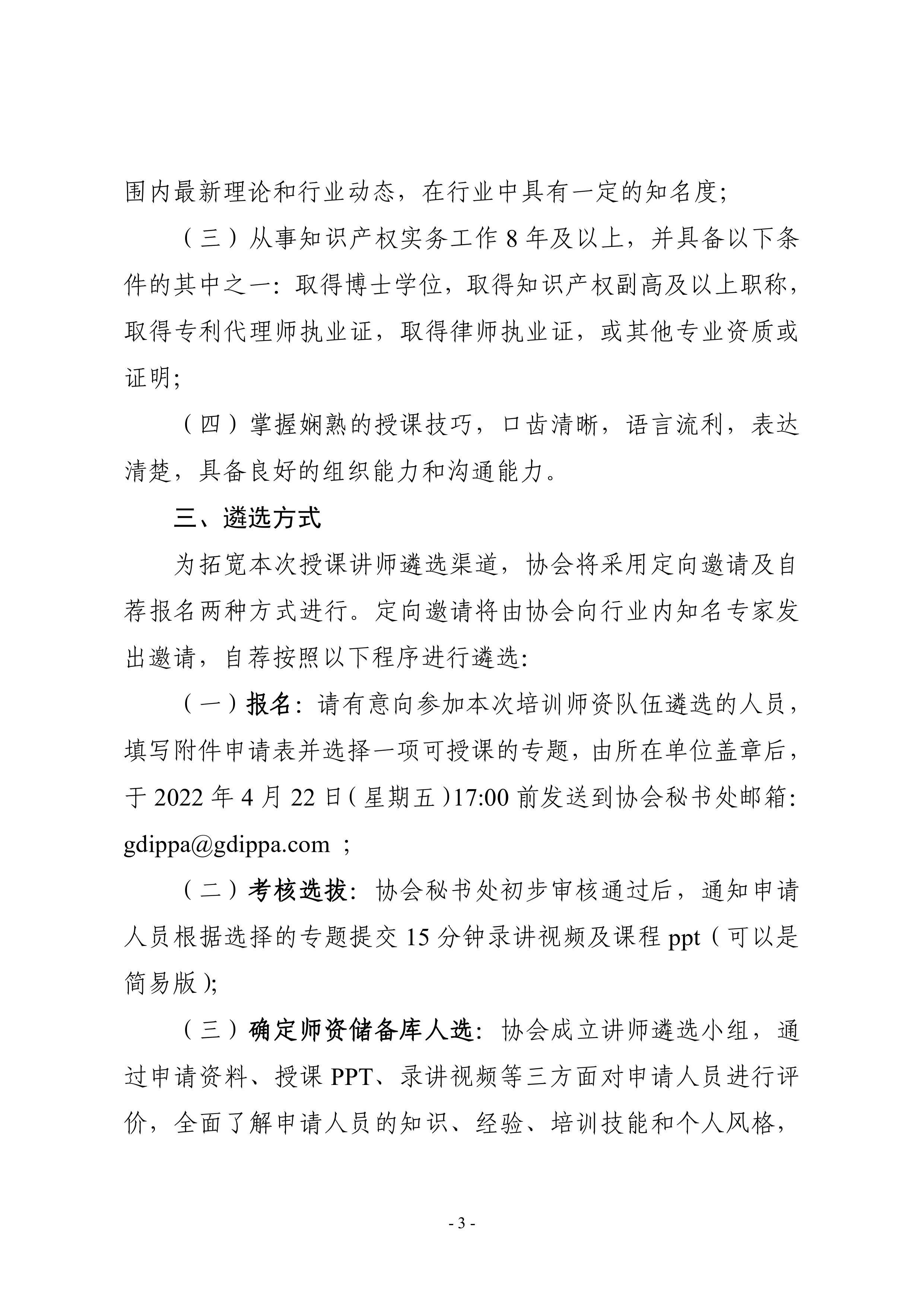 粤知保协发字〔2022〕10号-关于遴选广东省企业知识产权高管人才培育项目授课讲师的通知