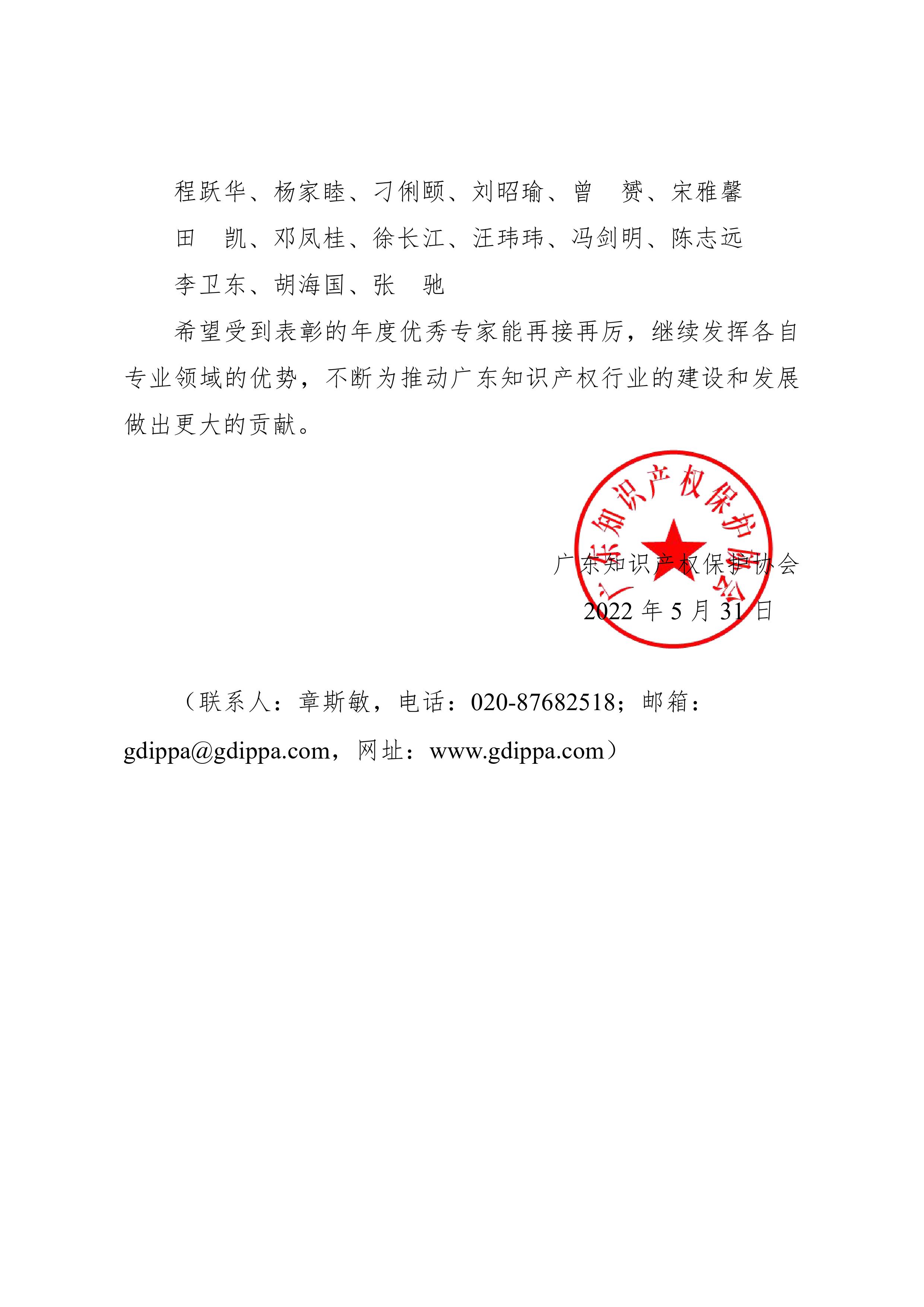 粤知保协发字〔2022〕24号-关于表彰协会2021年度“优秀专家”的通知