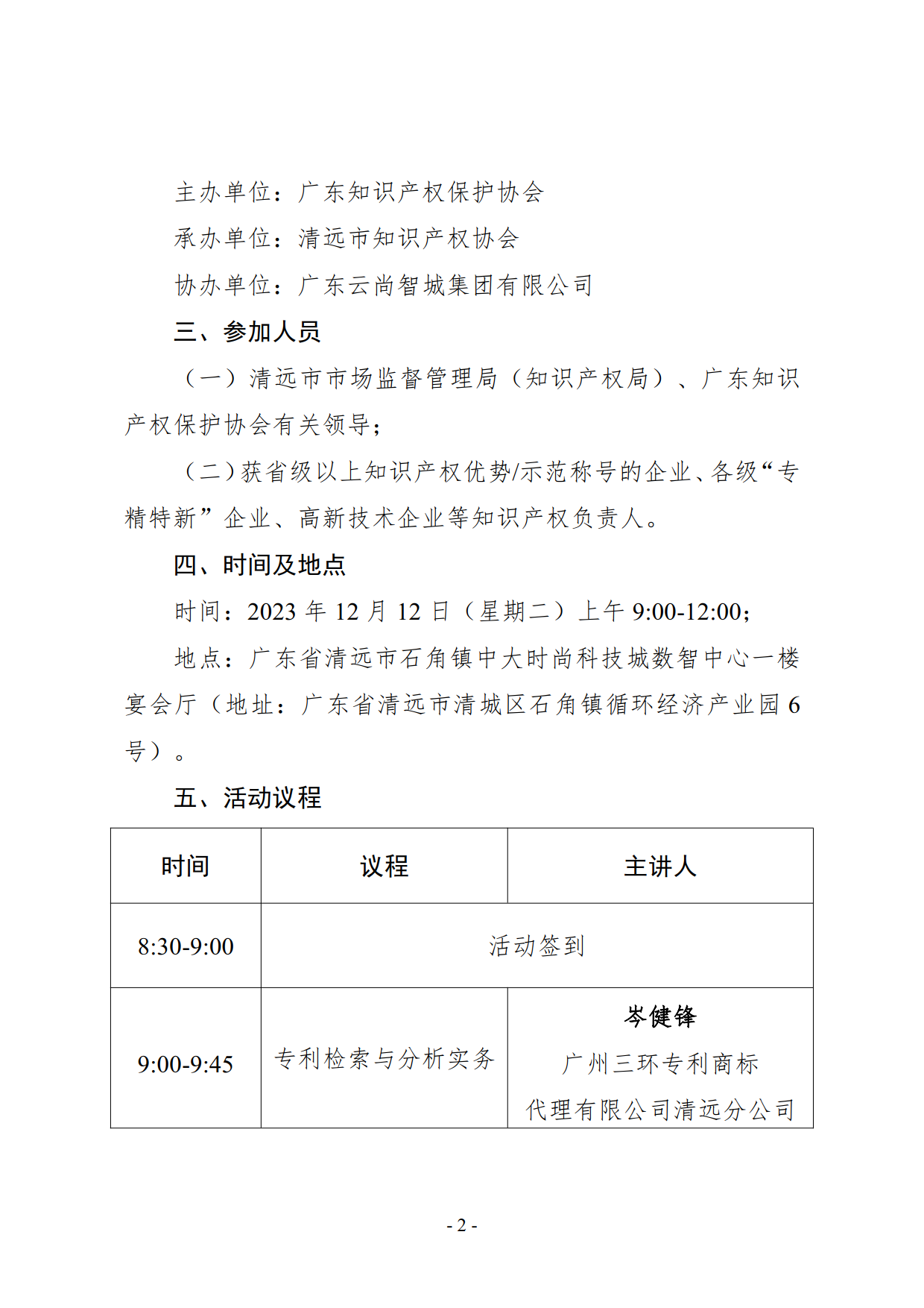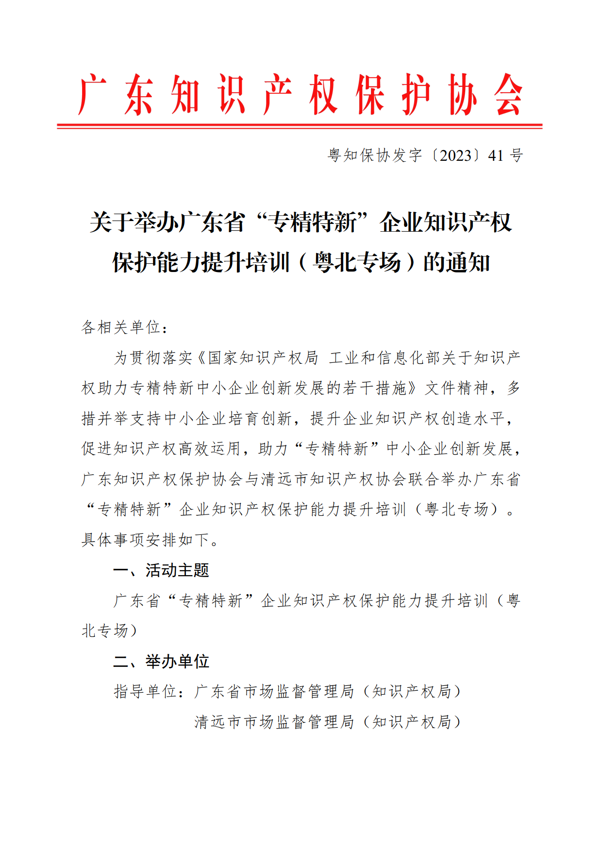 粤知保协发字〔2023〕41号-关于举办广东省“专精特新”企业知识产权保护能力提升培训(粤北专场)的通知