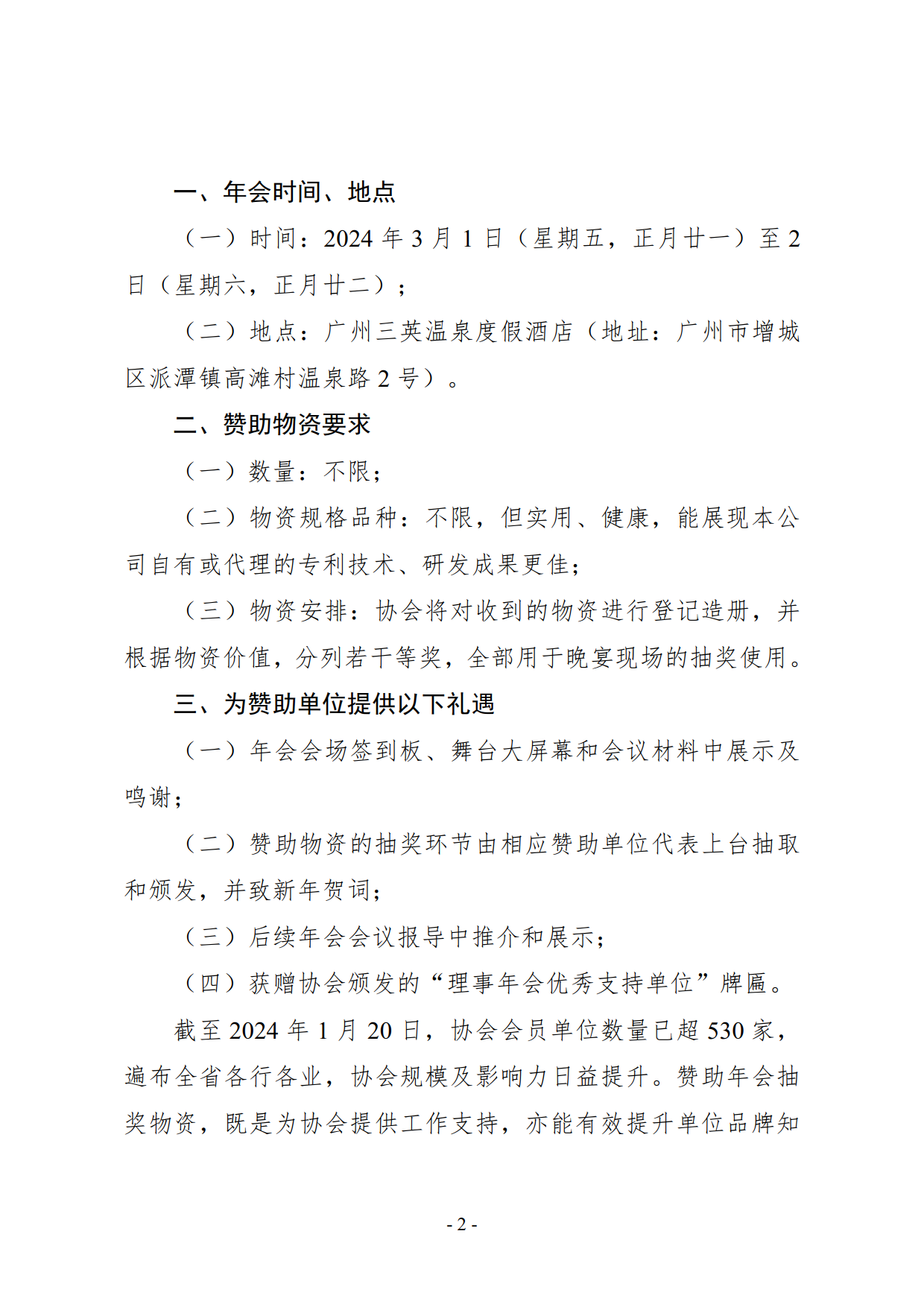 粤知保协发字〔2024〕2号-关于邀请赞助2023年度理事年会抽奖物资的通知