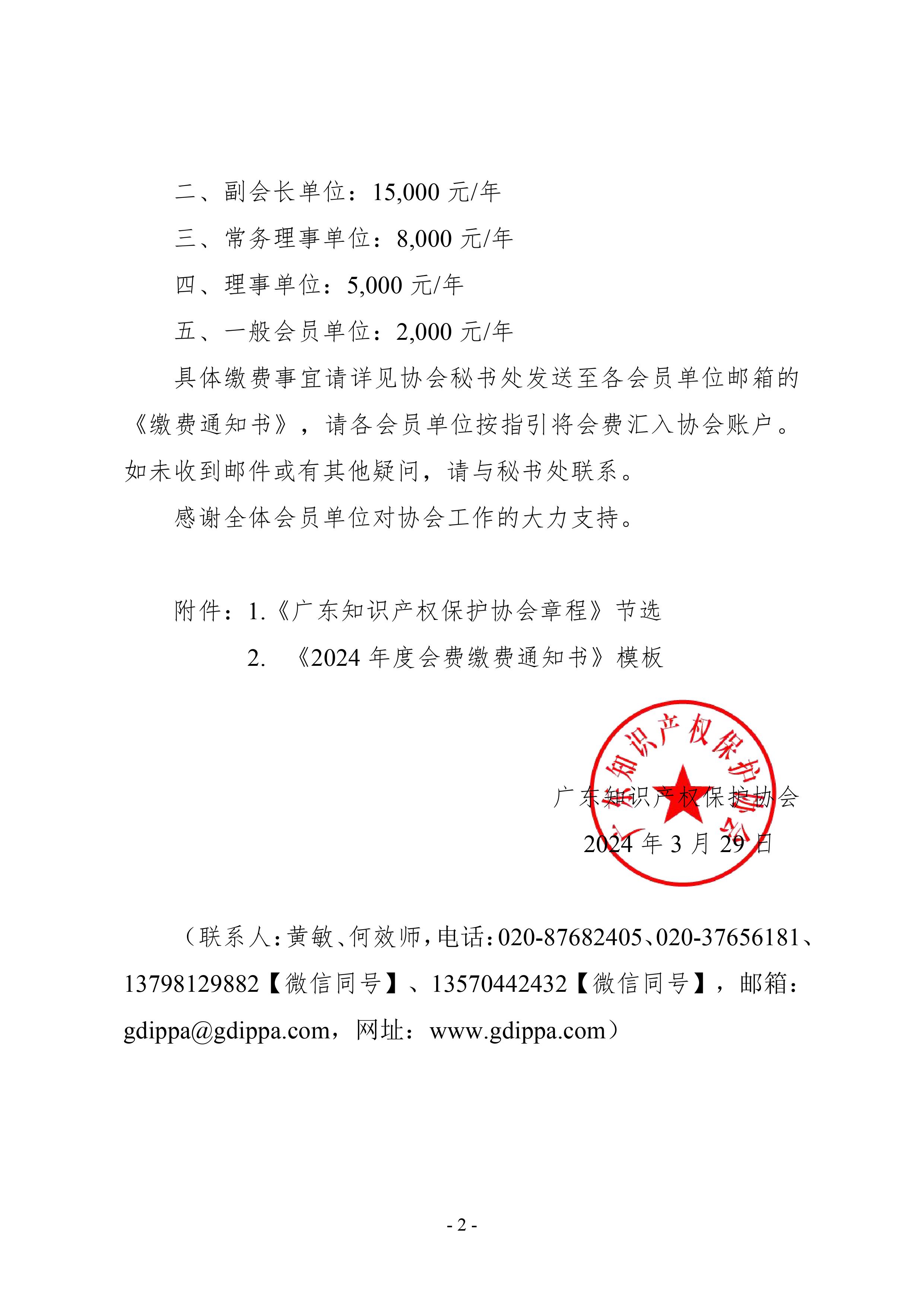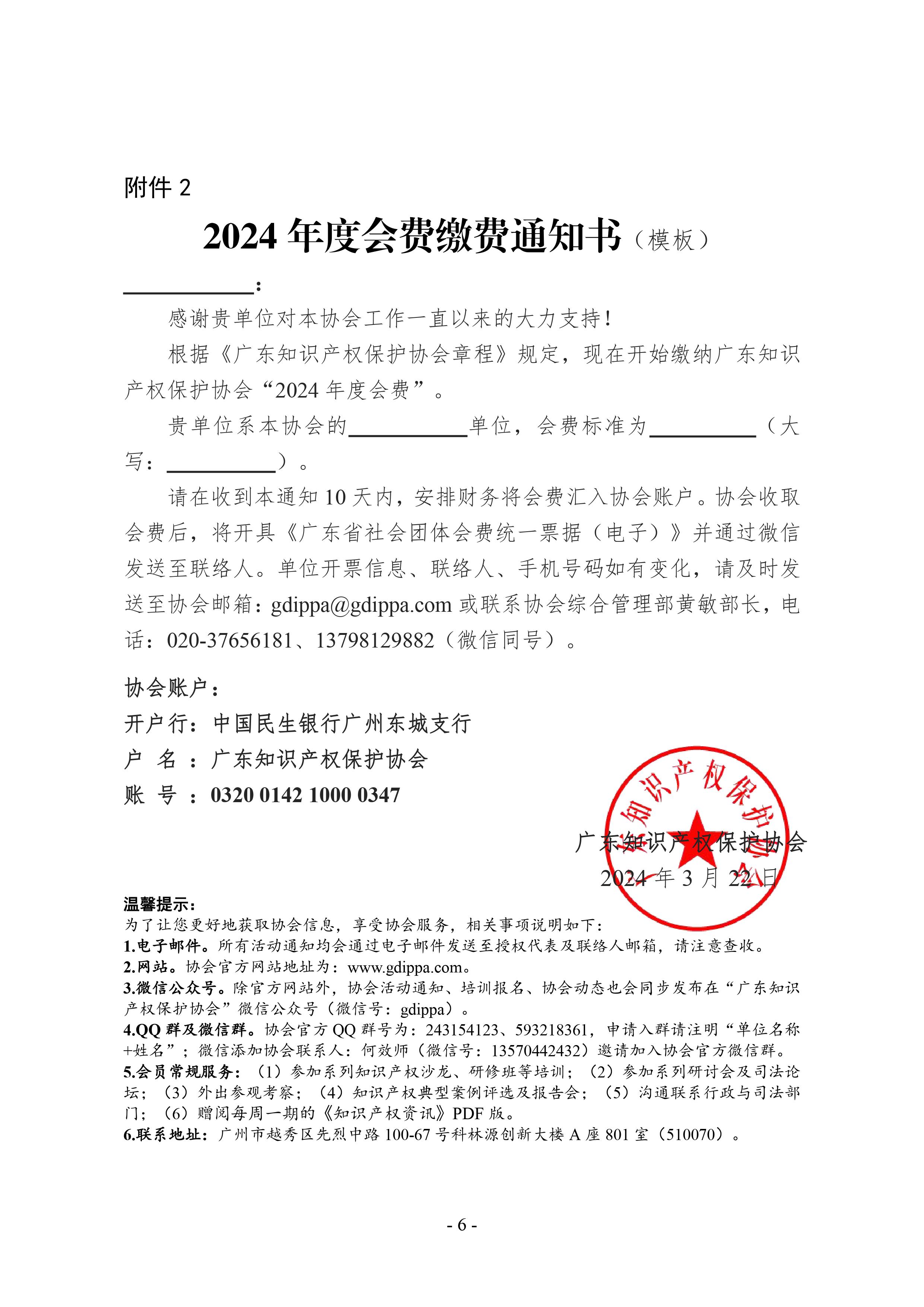 粤知保协发字〔2024〕8号-关于缴纳广东知识产权保护协会2024年度会费的通知