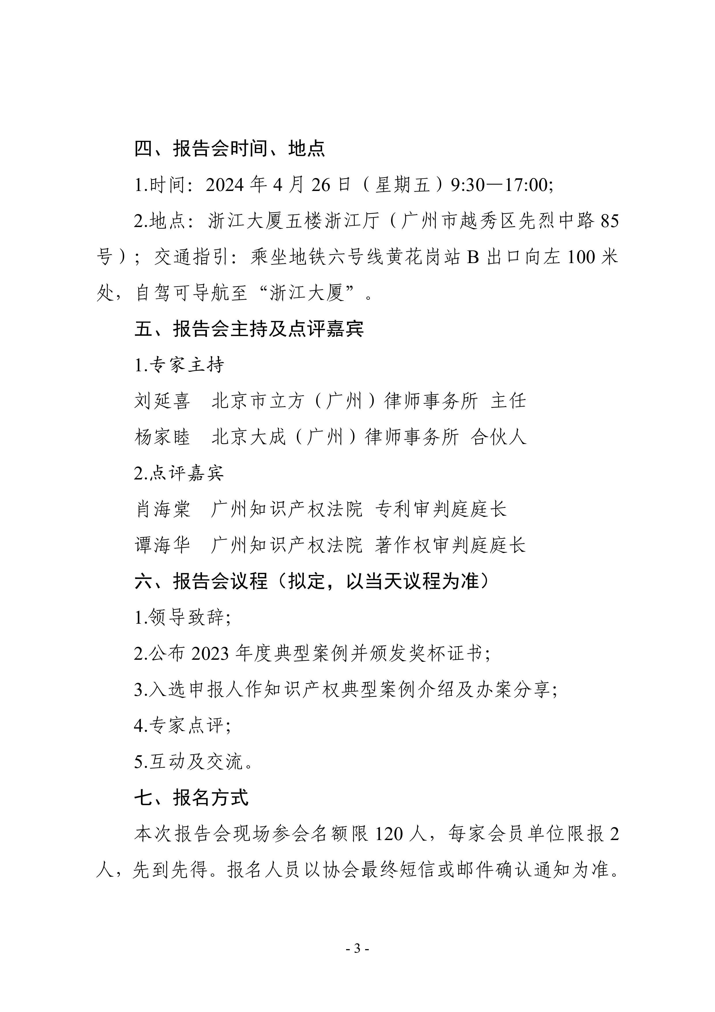 粤知保协发字〔2024〕10号-关于举办“广东知识产权保护协会2023年度知识产权典型案例报告会”的通知