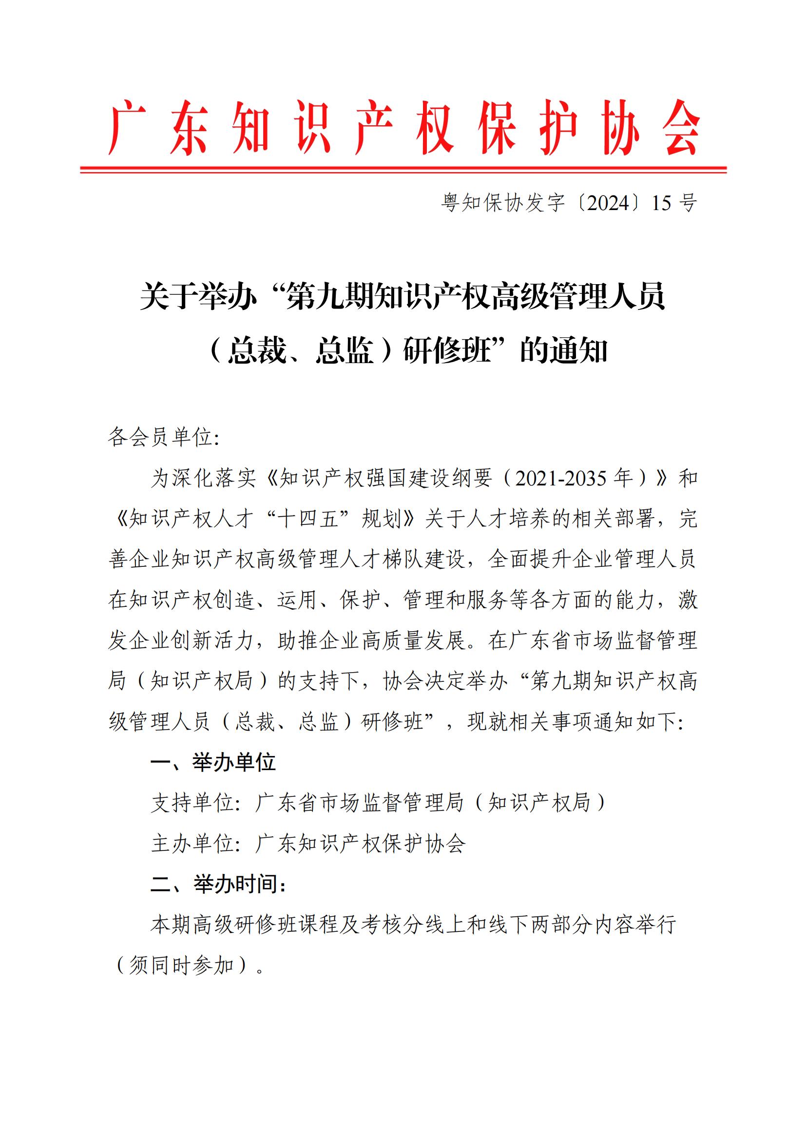 附件:“第九期知识产权高级管理人员(总裁、总监)研修班”报名回执