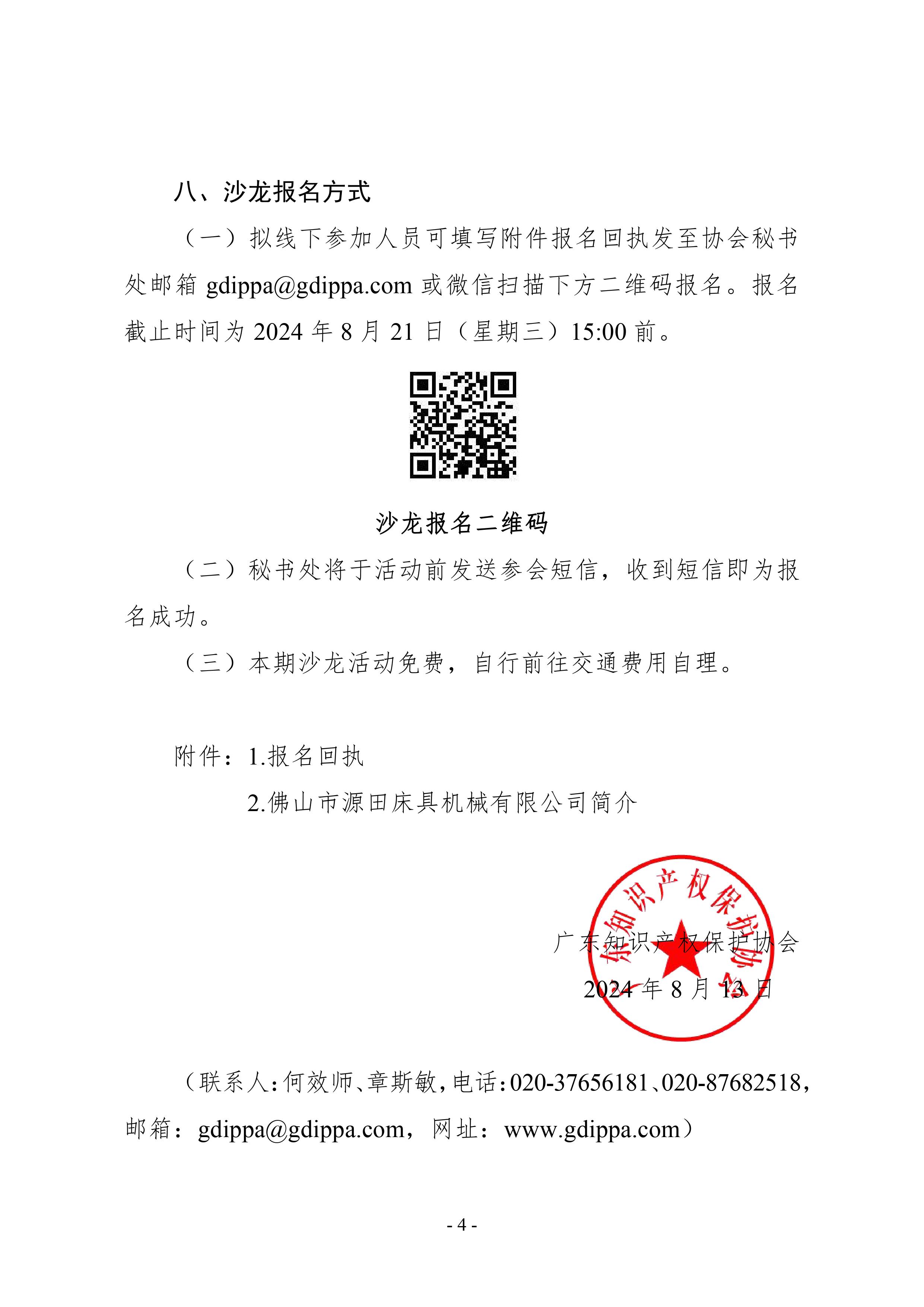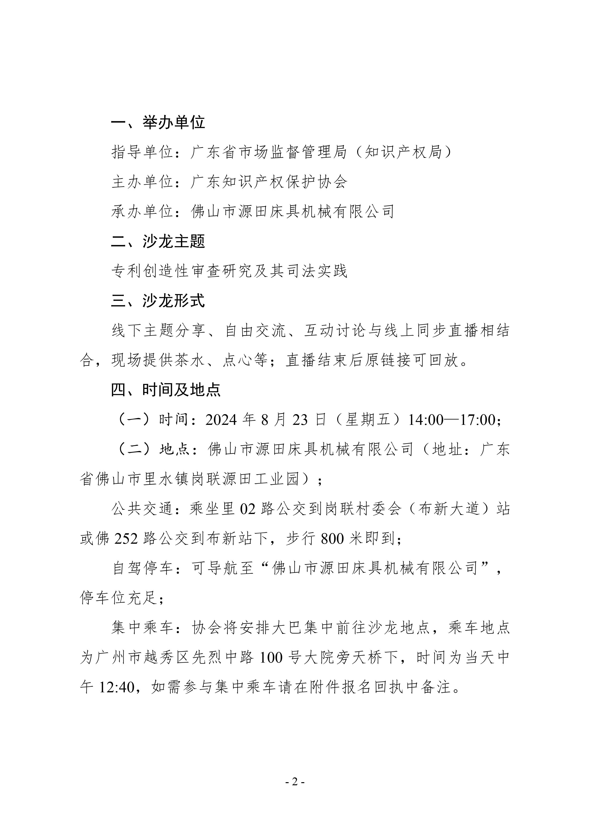 粤知保协发字〔2024〕20号-关于举办第五十四期“广东知识产权主题沙龙——专利创造性审查研究及其司法实践”的通知