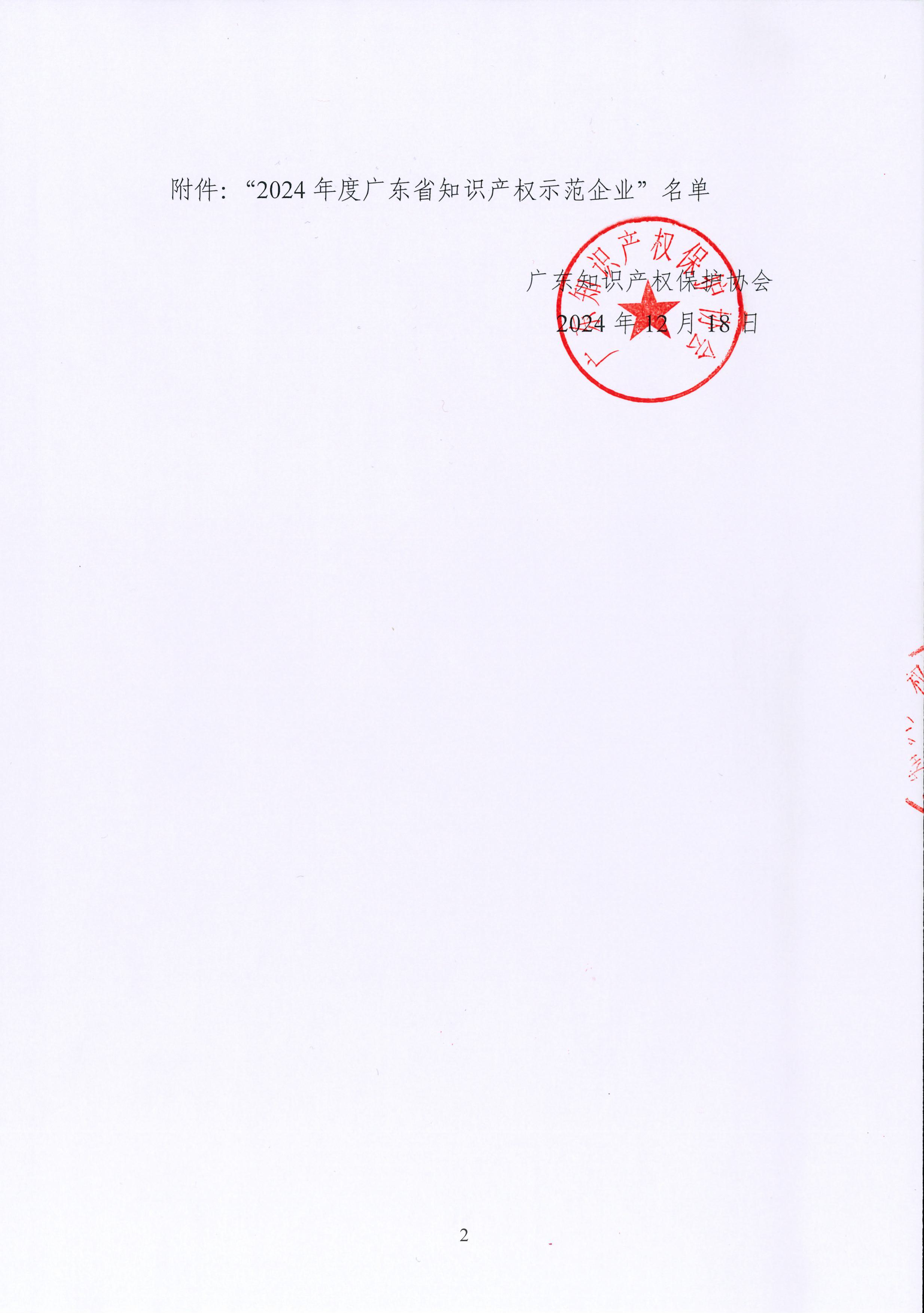 粤知保协发字〔2024〕35号-关于认定“2024年度广东省知识产权示范企业“的通知