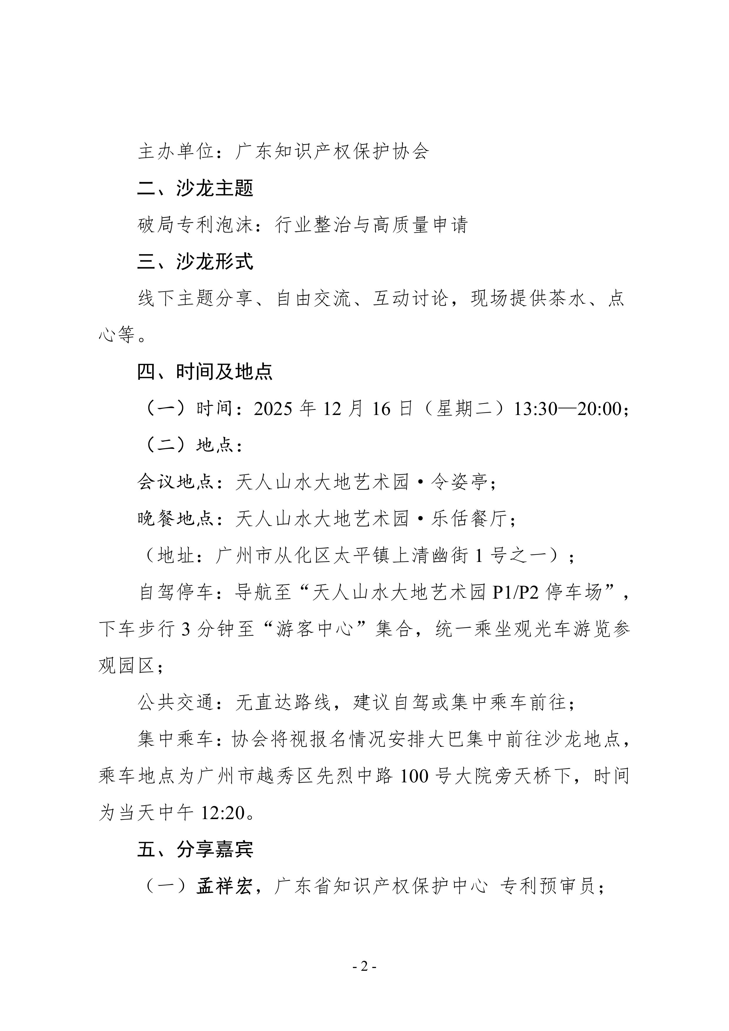 粤知保协发字〔2025〕41号-关于举办第六十六期“广东知识产权主题沙龙——破局专利泡沫:行业整治与高质量申请”的通知