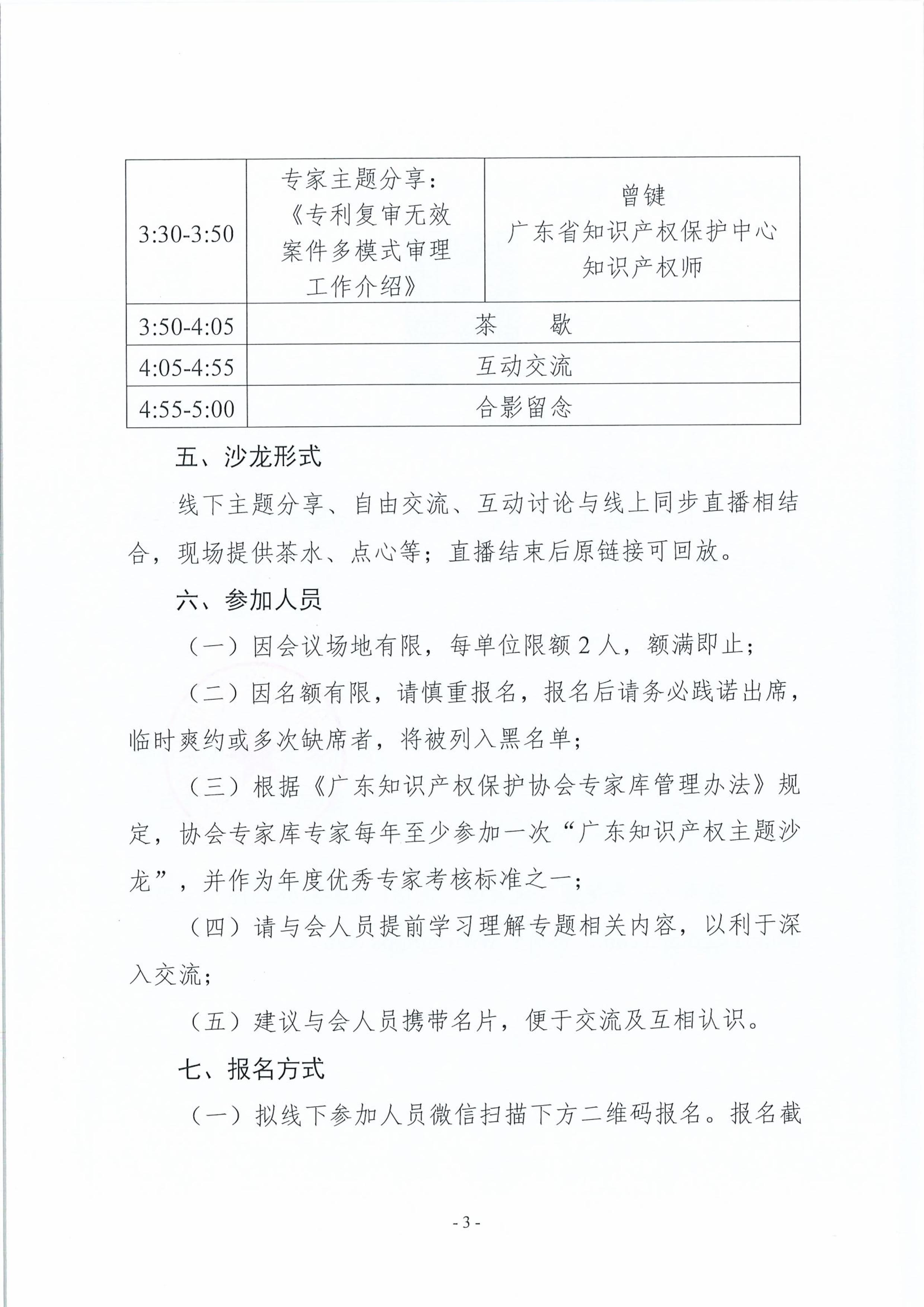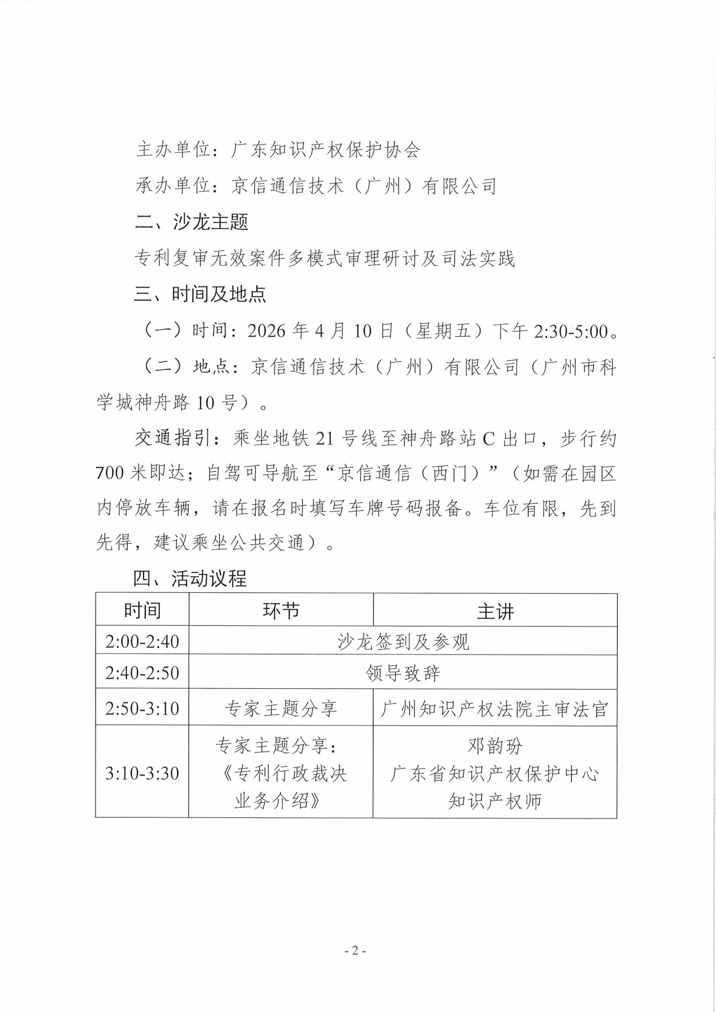 粤知保协发字〔2026〕11号-关于举办第六十七期“广东知识产权主题沙龙——专利复审无效案件多模式审理研讨及司法实践“的通知
