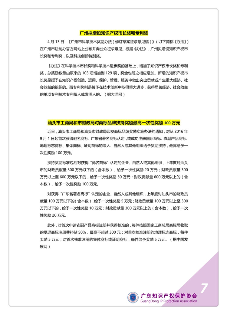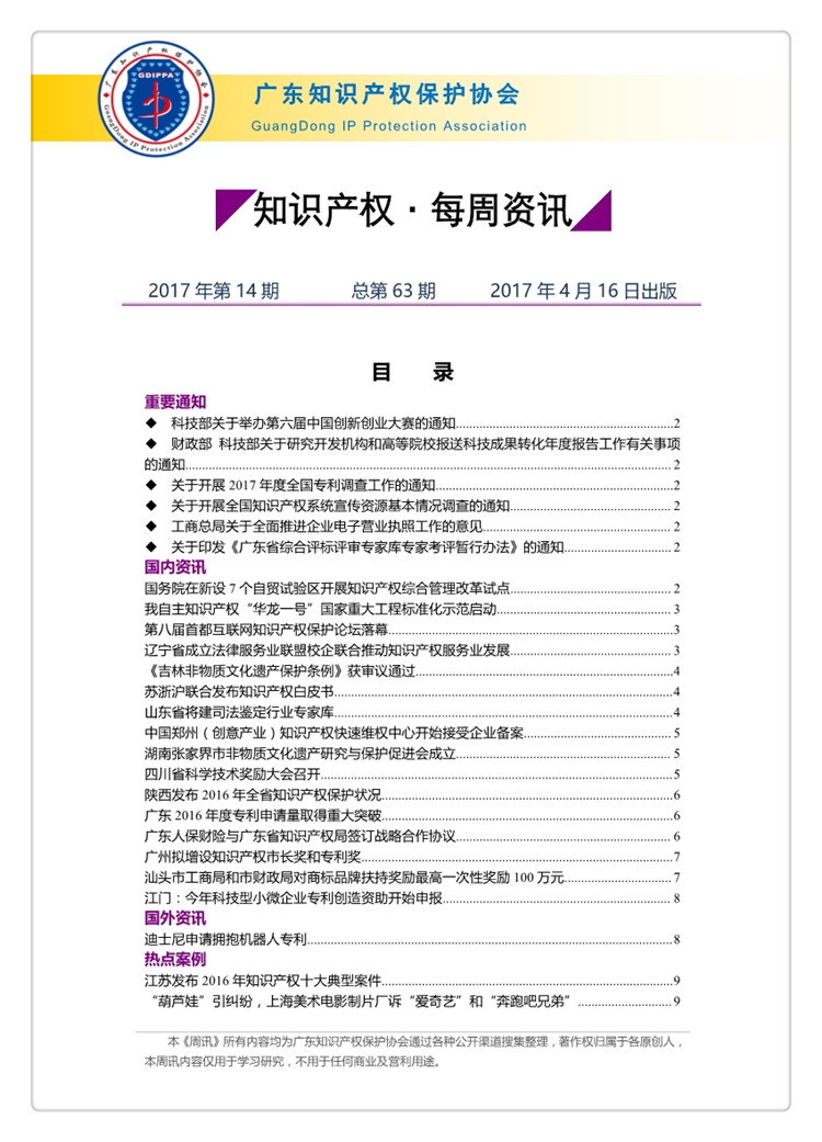 广东知识产权保护协会第63期:知识产权·每周资讯