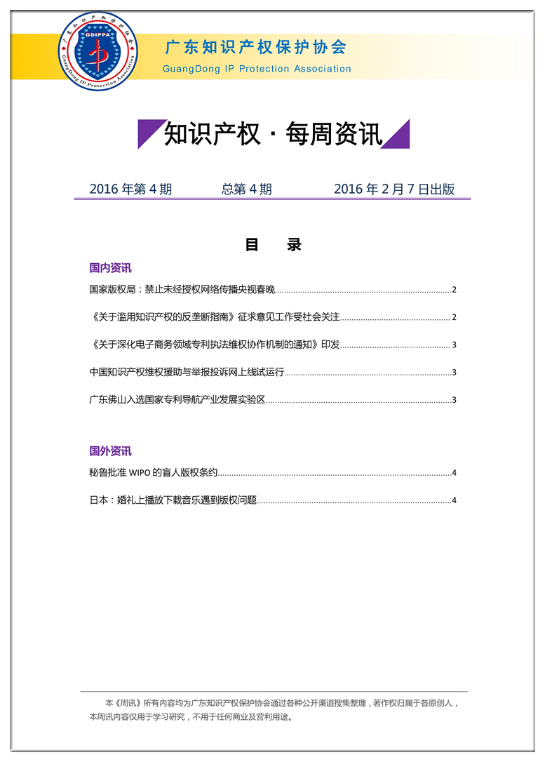 广东知识产权保护协会第4期:知识产权·每周资讯