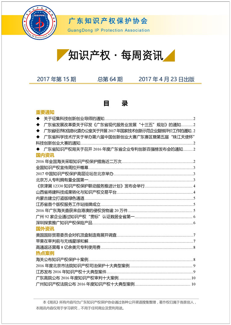 广东知识产权保护协会第64期:知识产权·每周资讯