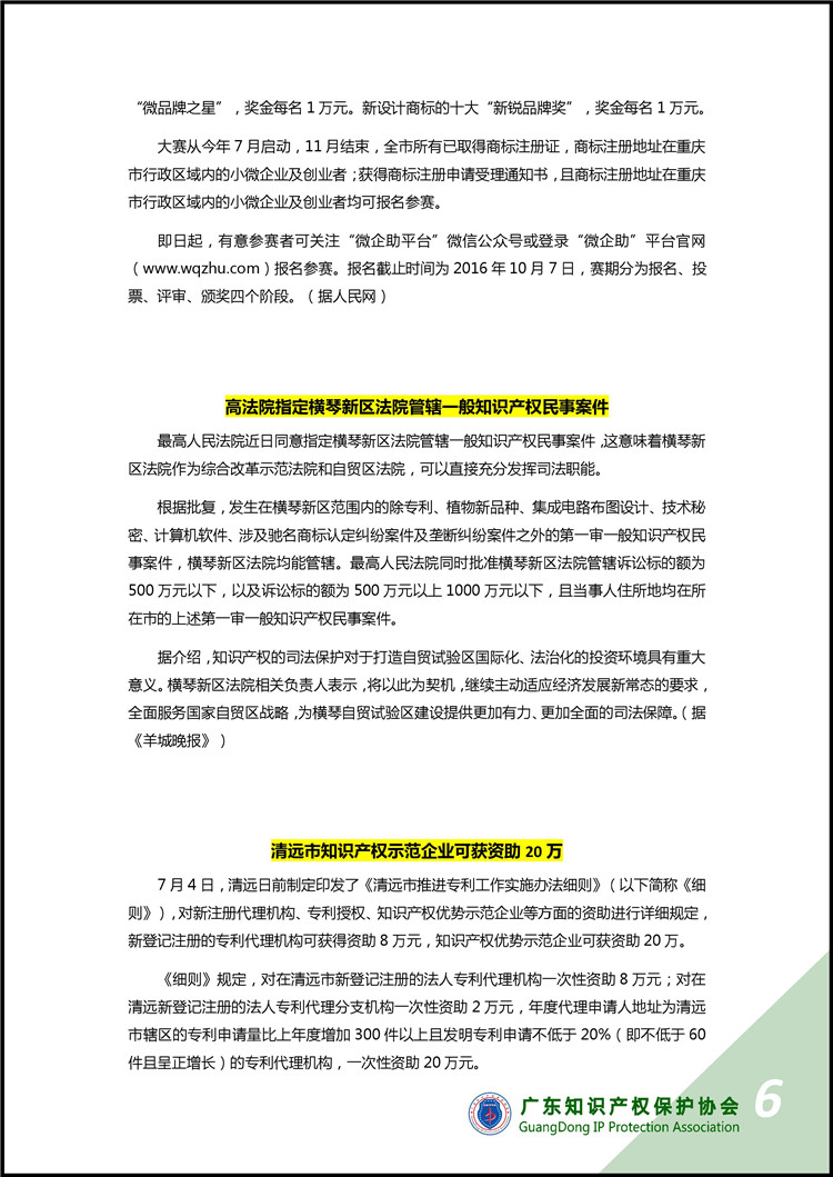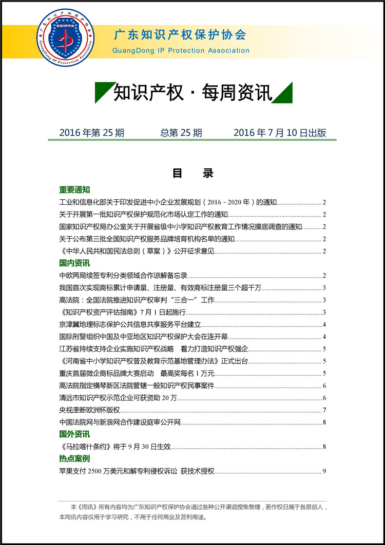广东知识产权保护协会第25期:知识产权·每周资讯