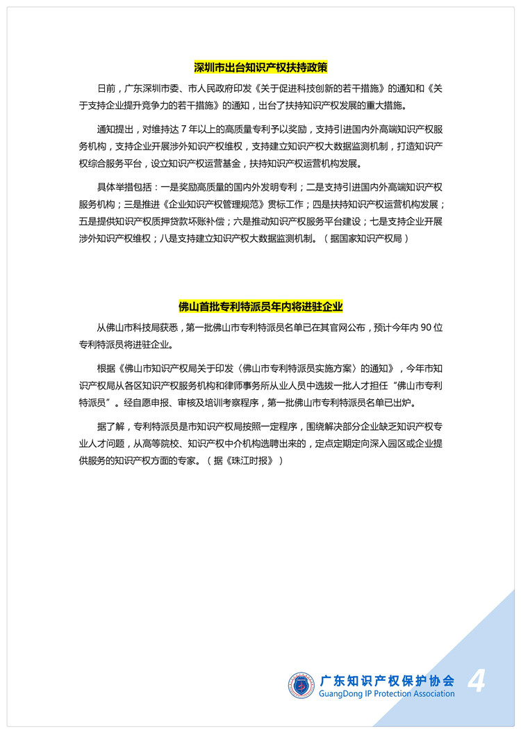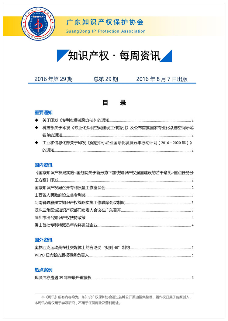 广东知识产权保护协会第29期:知识产权·每周资讯