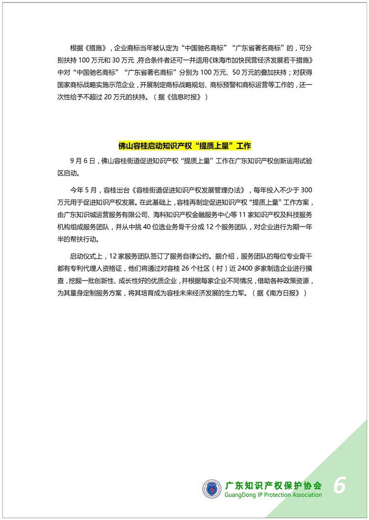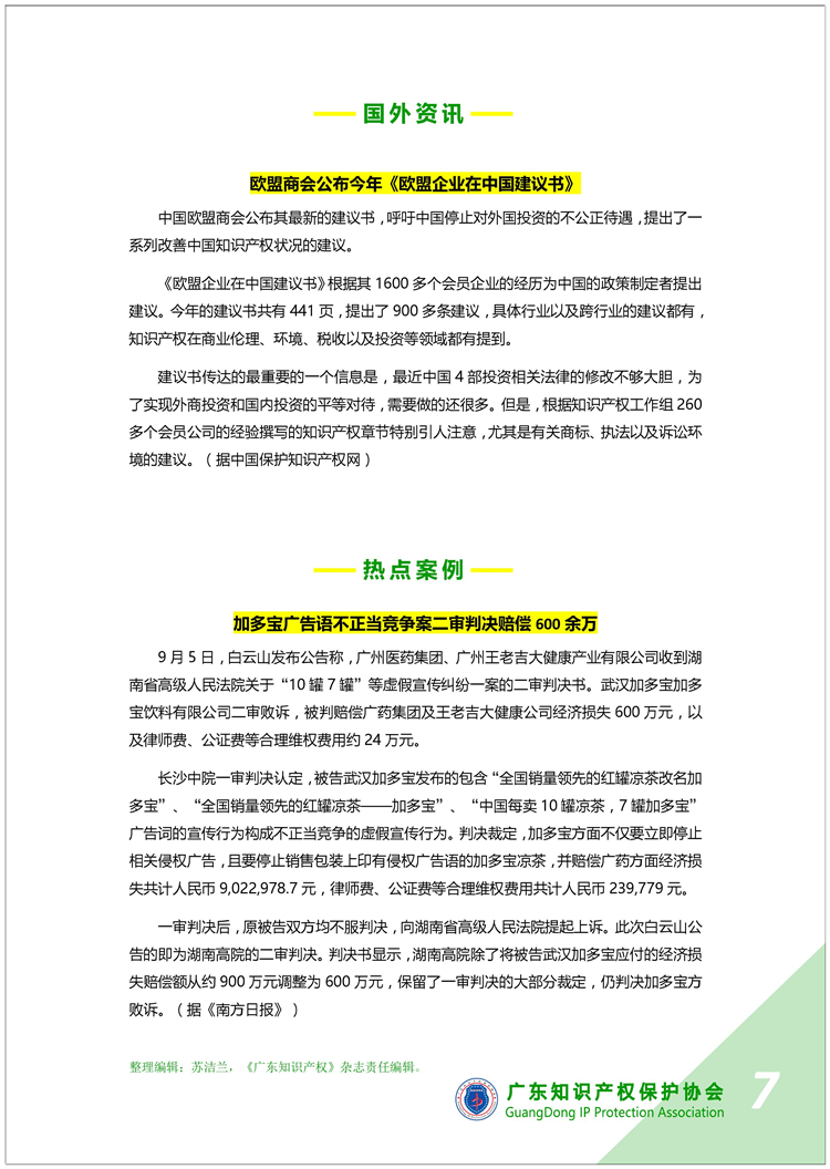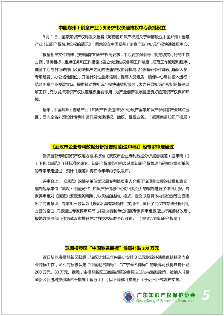 广东知识产权保护协会第34期:知识产权·每周资讯