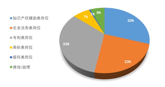 其次为知识产权辅助类岗位,占比29.85%,反映出知识产权服务岗位的需求量较大。