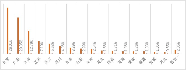 2.全国知识产权岗位需求中有51.54%集中在北上广深等一线城市。