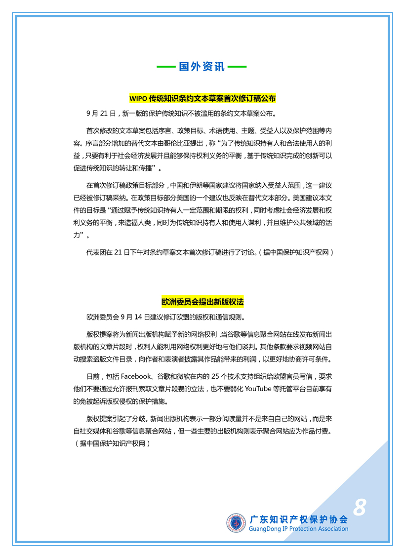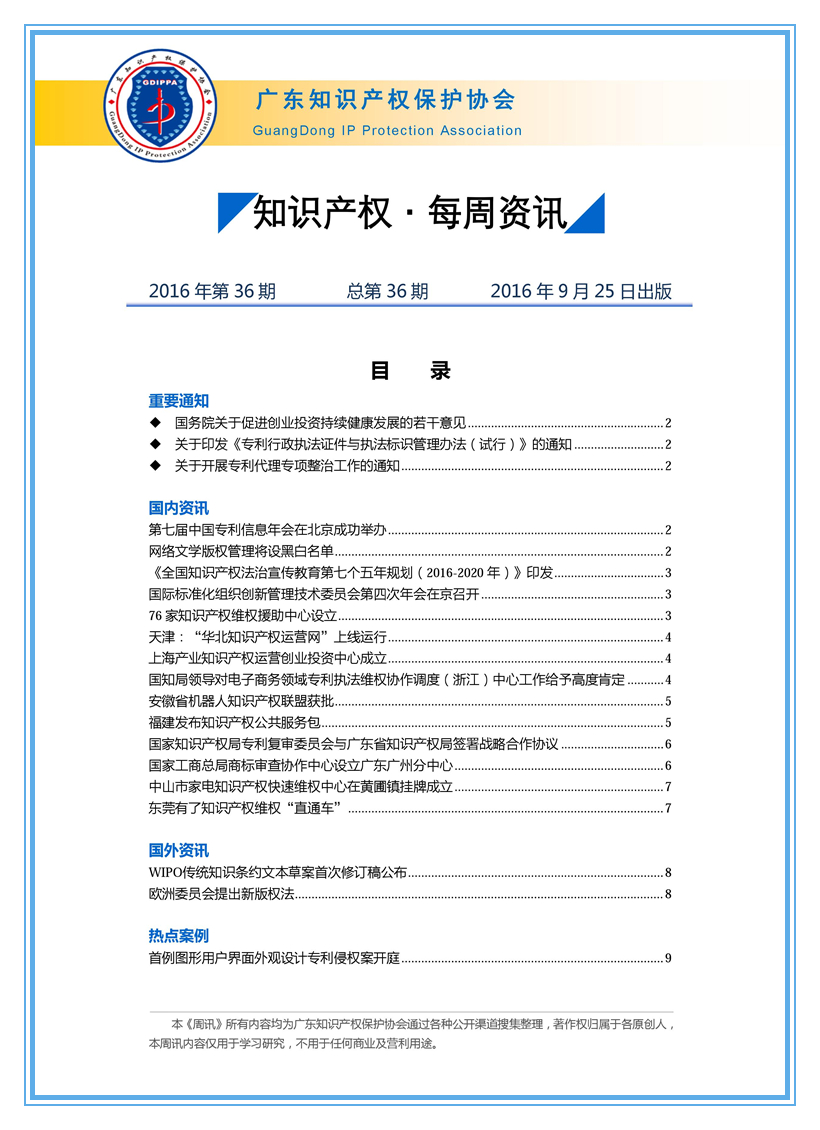 广东知识产权保护协会第36期:知识产权·每周资讯
