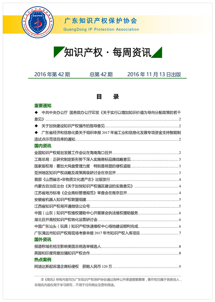 广东知识产权保护协会第42期:知识产权·每周资讯