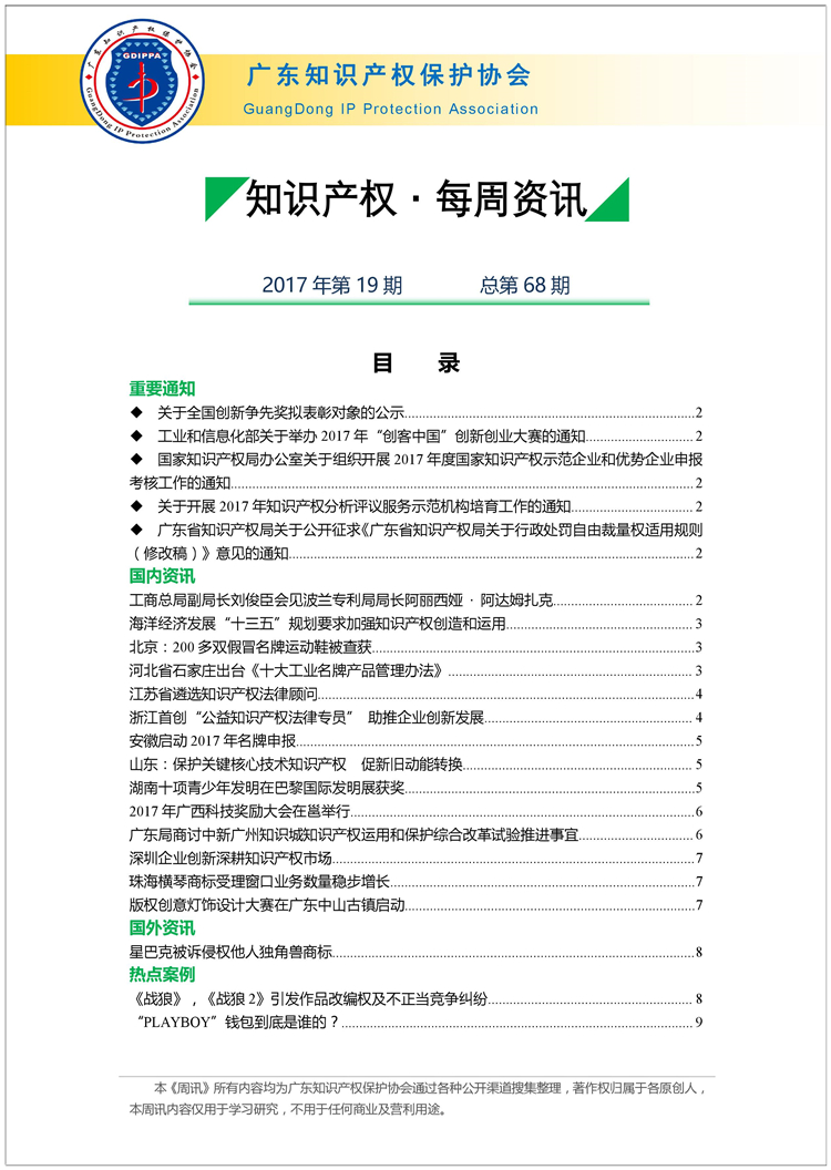 广东知识产权保护协会第68期:知识产权·每周资讯